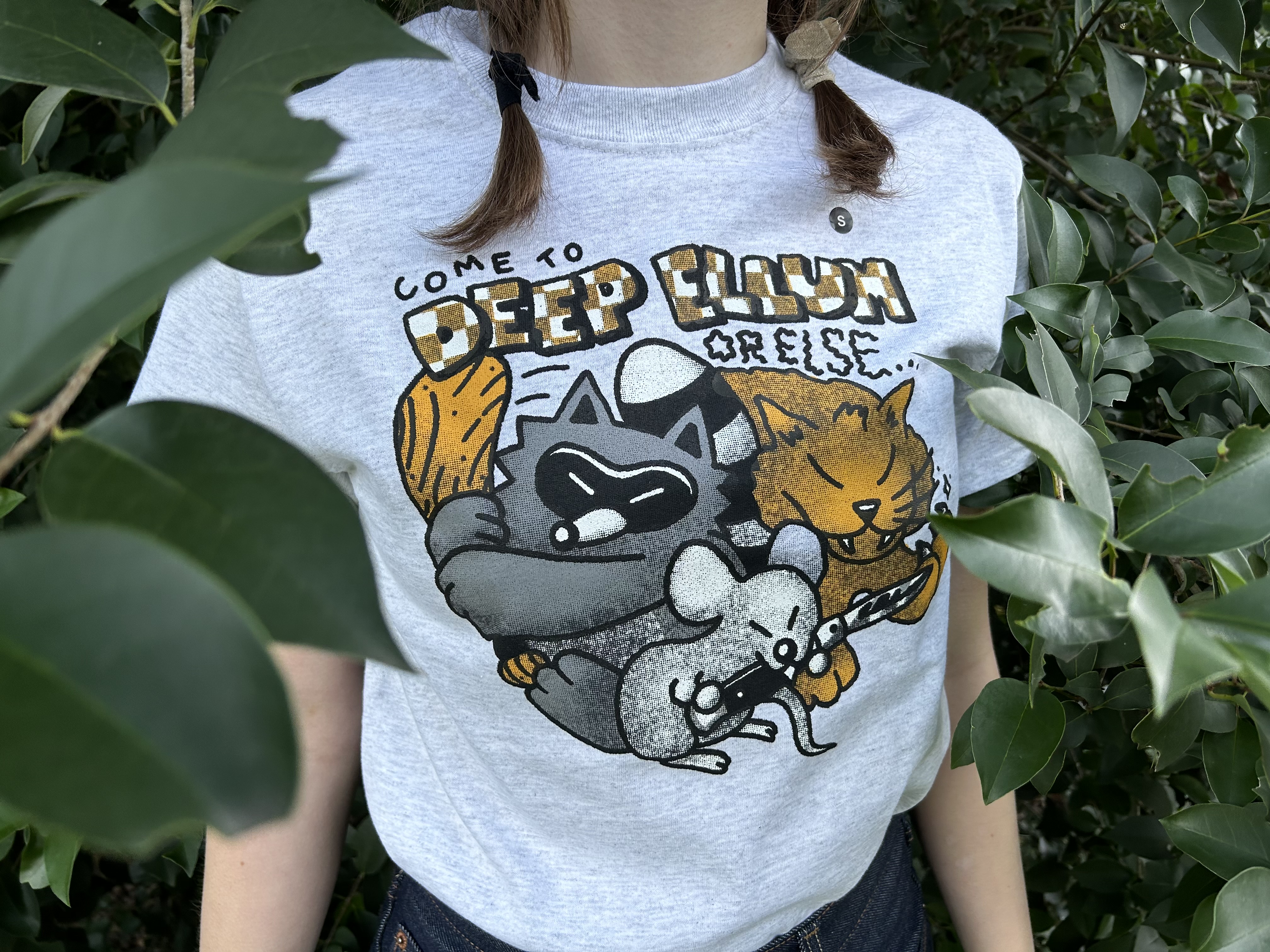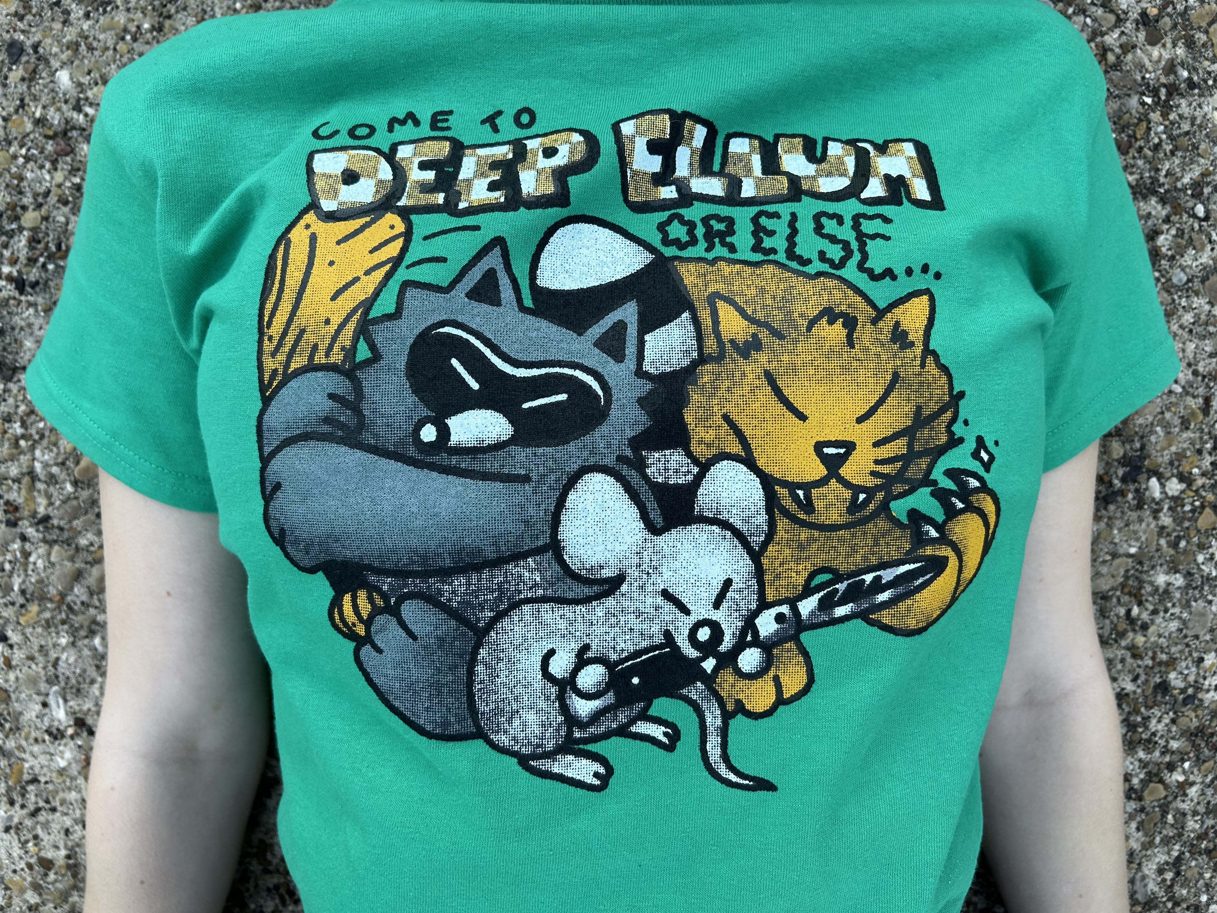 Unleash the gritty spirit of Deep Ellum with our exclusive “Come to Deep Ellum or Else” t-shirt. Crafted for the daring and the bold by Deep Ellum Apparel artist Gino Dal Cin, this shirt features a trio of notorious characters: a gun-toting rat, an alley cat with attitude, and a raccoon with a rebellious streak. They stand united, embodying the perseverance of Deep Ellum locals.