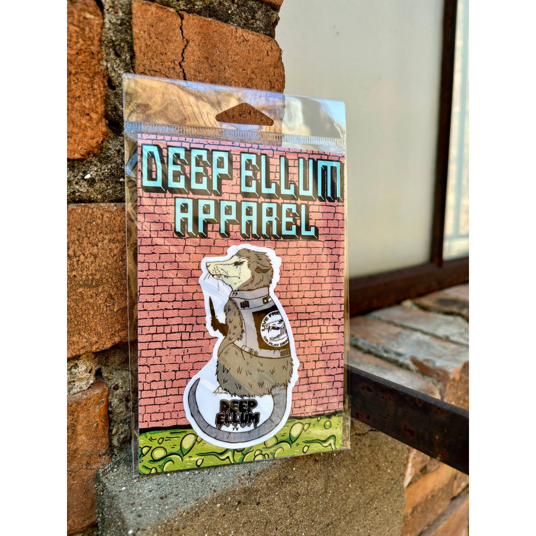 Our Punk Possum Sticker is a funny saltue to this edgy, ubiquitous, Texas critter. A scruffy possum dons a shabby biker vest emblazoned with the species’ rallying cry, “Live Free or Play Dead.” He’s flashing a blade, so watch out!