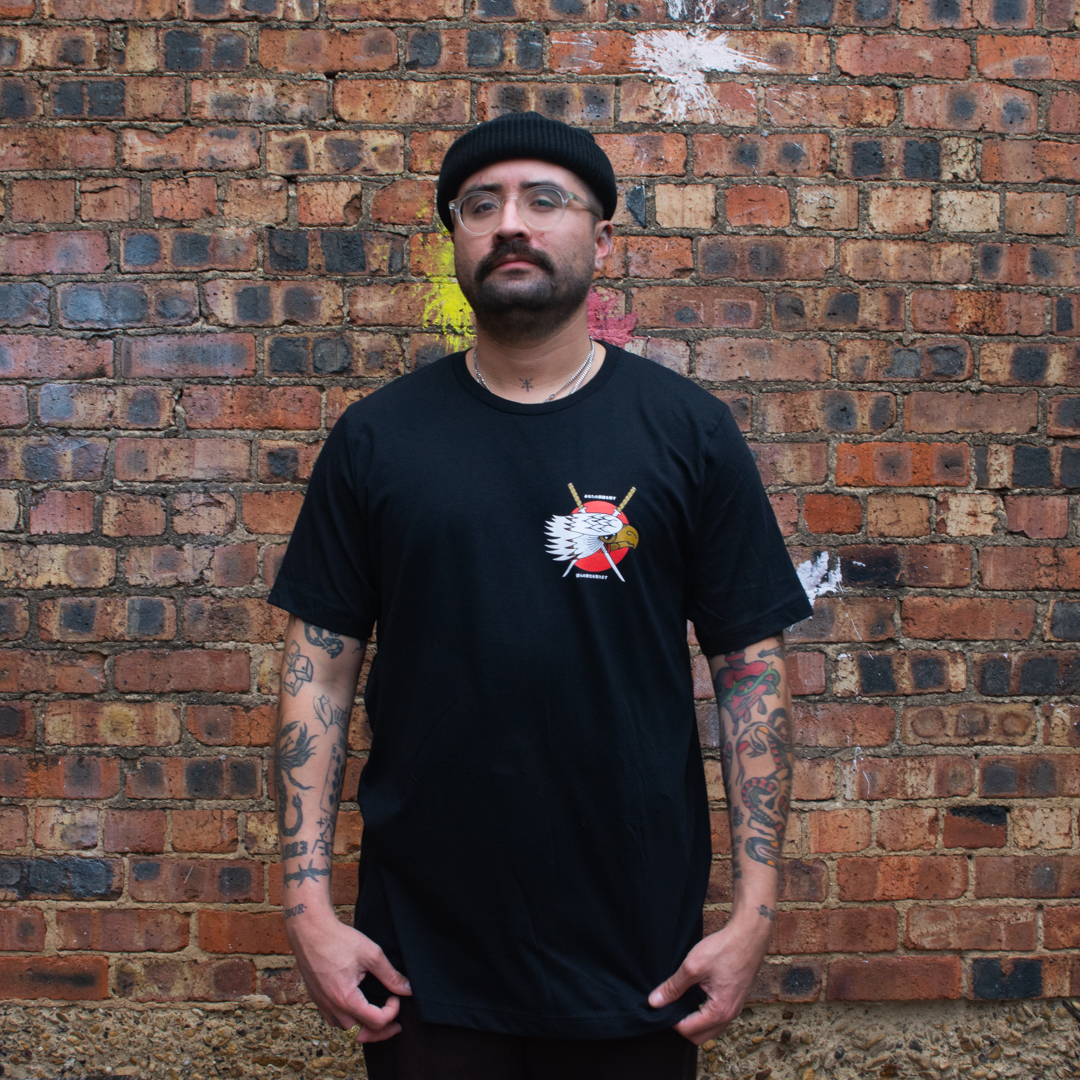 Our Rising Eagle t-shirt features a majestic eagle and sword design. This unique piece is more than just a t-shirt, it’s a statement of strength, freedom, and local pride.
